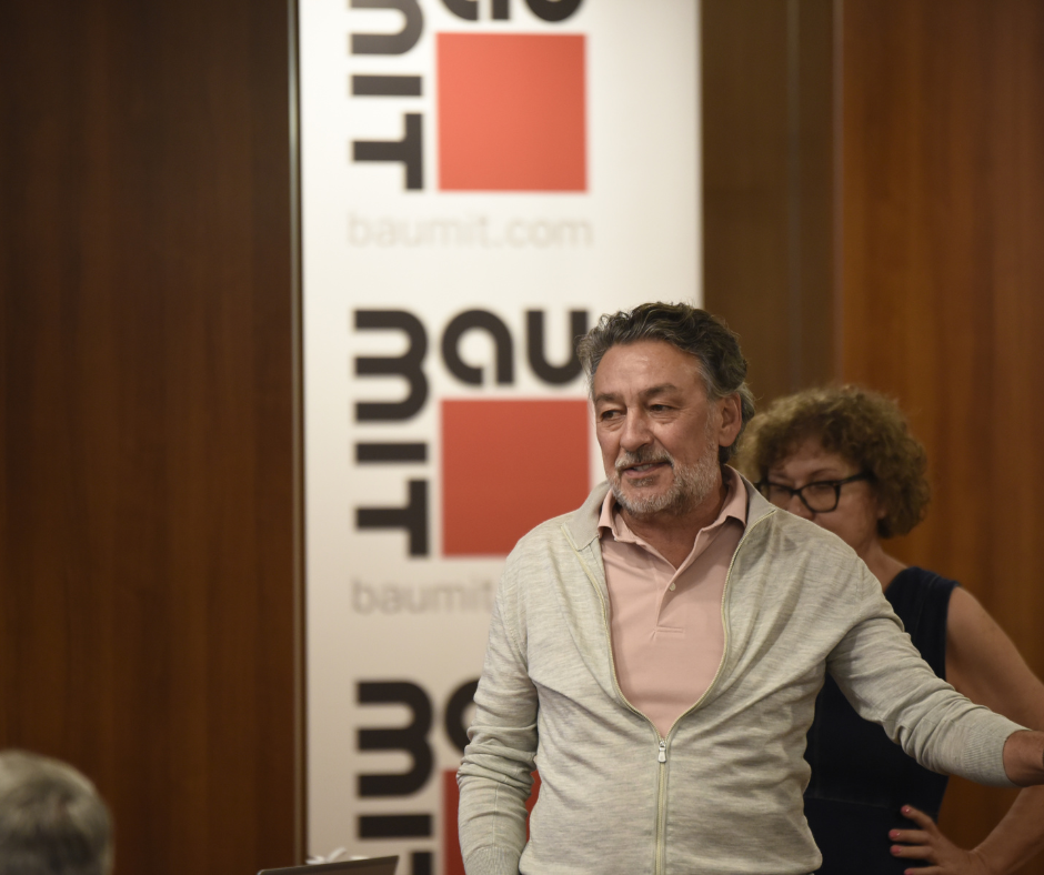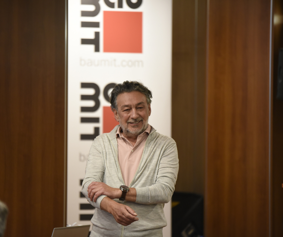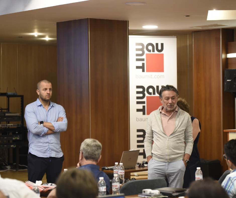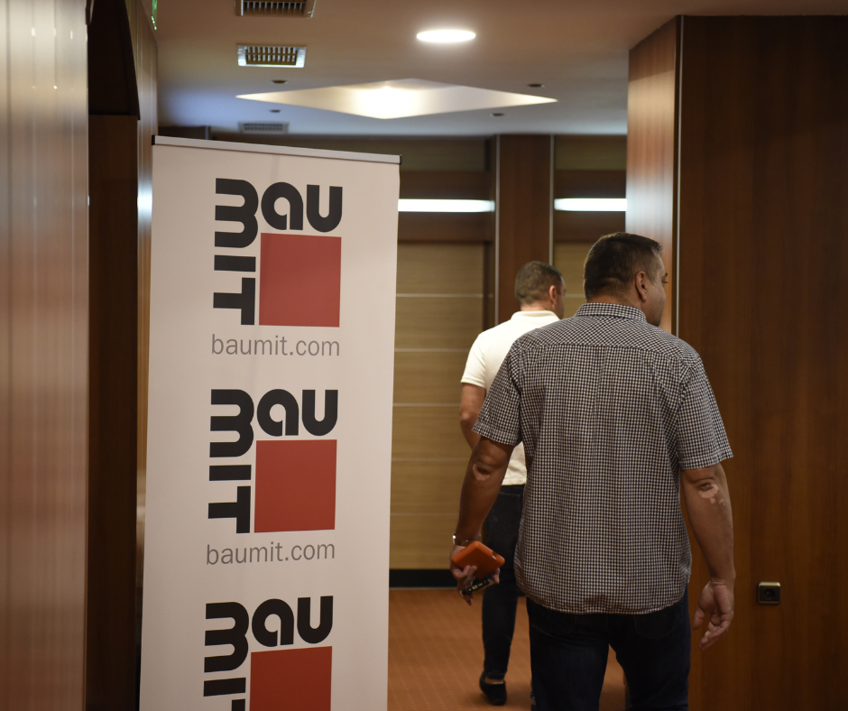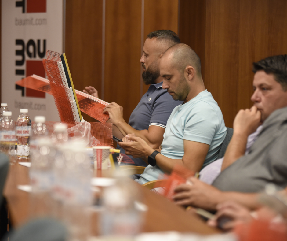 Новите продукти и технологични решения представи инж. Огнян Цонков, продуктов мениджър. След него д-р инж. Красимир Делов, главен технолог на Баумит, сподели технически насоки, нововъведения и отговори на въпросите на колегите от търговския отдел.