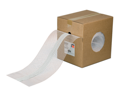 Ивица от алкалоустойчива стъклотекстилна мрежа, с широчина 25 cm, с успоредно залепени в средата две пластмасови ленти, всяка широка по 24 mm, за оформяне на ръбове с ъгъл, различен от 90º.